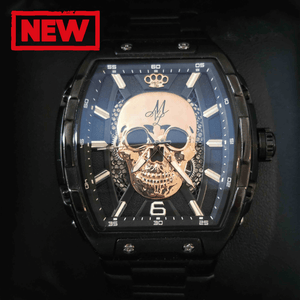 MVL Автоматические часы с черепом, японский механизм / стальной ремешок черный/черный